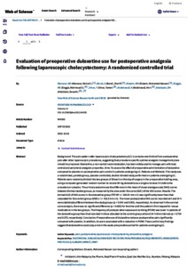 | Uncontrolled Keywords: | pain, postoperative, laparoscopic cholecystectomy, duloxetine, analgesia |