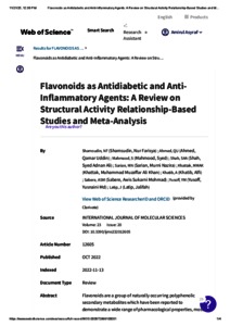 Shamsudin, Nur Farisya and Ahmed, Qamar Uddin and Mahmood, Syed and Shah, Syed Adnan Ali and Sarian, Murni Nazira and Khattak, Muhammad Muzaffar Ali Khan and Khatib, Alfi and Sabere, Awis Sukarni Mohmad and Yusoff, Yusnaini Md and Latip, Jalifah (2022) Flavonoids as antidiabetic and anti-inflammatory agents: a review on structural activity relationship-based studies and meta-analysis. International Journal of Molecular Sciences, 23 (20). pp. 1-35. ISSN 1661-6596 E-ISSN 1422-0067
