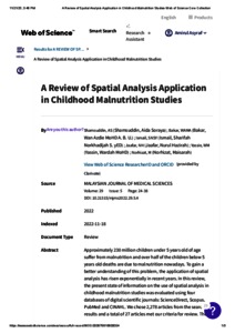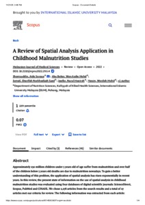 Shamsuddin, Aida Soraya and Mohd Abu Bakar, Wan Azdie and Syed Ismail, Sharifah Norkhadijah and Jaafar, Nurul Hazirah and Mohd Yassin, Wardah and Norhizat, Maisarah (2022) A review of spatial analysis application in childhood malnutrition studies. Malaysian Journal of Medical Sciences, 29 (5). pp. 24-38. ISSN 1394-195X E-ISSN 2180-4303