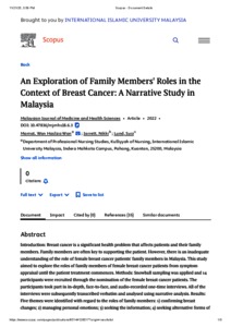 | Uncontrolled Keywords: | Breast cancer, Family members, Narrative, Malaysia |