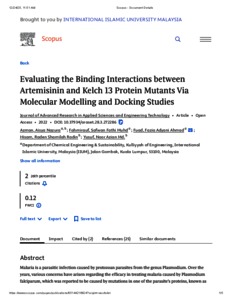 Azman, Aisya Nazura and Muhd Fahmirauf, Safwan Fathi and Ahmad Fuad, Fazia Adyani and Radin Hisam, Raden Shamilah and Md. Yusuf, Noor Azian (2022) Evaluating the binding interactions between Artemisinin and Kelch 13 protein mutants via molecular modelling and docking studies. Journal of Advanced Research in Applied Sciences and Engineering Technology, 28 (3). pp. 272-286. ISSN 2462-1943