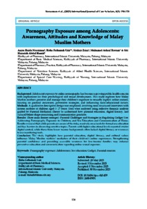 Norazman, Anisa Haida and Uzir, Bisha Fathamah and Zaini, Syahrir and Rostam, Muhamad Ashraf and Abdul Hamid, Siti Hazariah (2025) Pornography exposure among adolescents: awareness, attitudes and knowledge of Malay Muslim mothers. International Journal of Care Scholars, 8 (3). pp. 158-170. ISSN 2600-898X