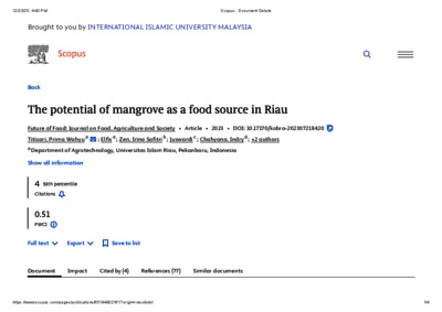 Titisari, Prima Wahyu and Elfis, Elfis and Juswardi, Juswardi and Zen, Irina Safitri and Chahyana, Indry and Permatasari, Tika and Ulya, Ummul Muthmainnah (2023) The potential of mangrove as a food source in Ria. Future of Food: Journal on Food, Agriculture and Society, 11 (5). pp. 1-18. ISSN 2197-411X