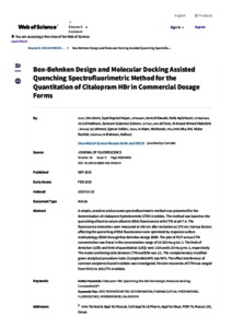| Uncontrolled Keywords: | Citalopram HBr, Quenching, Box-Behnken design, Molecular docking, ComplexMoGAPI |