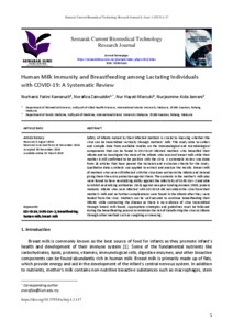 Kamaruzli, Nurhanis Fatini and Zainuddin, Norafiza and Marzuki, Nur Hayati and Jamani, Nurjasmine Aida (2025) Human milk immunity and breastfeeding among lactating individuals with COVID-19: a systematic review. Semarak Current Biomedical Technology Research Journal, 4 (1). pp. 1-17. ISSN 3030-5616
