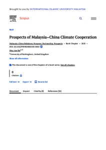 Lee, Pei May (2025) Prospects of Malaysia-China climate cooperation. In: Malaysia-China Relations: Progress, Partnership, Prospects. World Scientific Publishing, Singapore, pp. 161-177. ISBN 978-981-98-0134-3