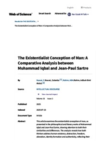 Nusrat, Zubaida and Abdul Rahim, Adibah (2025) The existentialist conception of man: a comparative analysis between Muhammad Iqbal and Jean-Paul Sartre. Intellectual Discourse, 33 (2). pp. 331-354. ISSN 0128-4878 E-ISSN 2289-5639