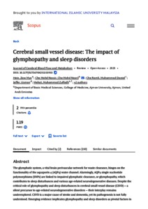 Hein, Zaw Myo and Che Mohd Nassir, Che Mohd Nasril and Che Ramli, Muhammad Danial and Jaffer, Usman and Mehat, Muhammad Zulfadli and Mustapha, Muzaimi and Abdul Hamid, Hafizah (2025) Cerebral small vessel disease: the impact of glymphopathy and sleep disorders. Journal of Cerebral Blood Flow and Metabolism, 45 (8). pp. 1446-1468. ISSN 0271-678X E-ISSN 1559-7016