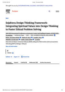 Abdul Rahim, Elin Eliana and Mahmud, Murni and Azuddin, Muna and Abdullah, Lili Marziana and Saidin, Aznan Zuhid and Mohammed, Siti Asma (2025) Sejahtera design thinking framework: integrating spiritual values into design thinking to foster ethical problem solving. In: 2025 IEEE International Conference on Automatic Control and Intelligent Systems, I2CACIS 2025, 27 June 2025 - 28 June 2025, Kuala Lumpur.