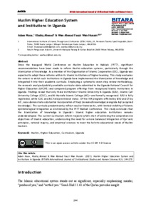 Musa, Adam and Mohd Israil, Khaliq Ahmad and Hashim @ Wan Husain, Wan Ahmad Fauzi (2025) Muslim higher education system and institutions in Uganda. BITARA International Journal of Civilizational Studies and Human Sciences, 8 (3). pp. 244-270. E-ISSN 2600-9080