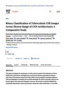 Meraj, Syeda Shaizadi and Shah, Asadullah and Ismail, Ahsiah and Tengku Sembok, Tengku Mohd and Shadab, Syed and Aftab, Syed (2025) Binary classification of tuberculosis CXR images across diverse range of CNN architectures: a comparative study. In: 9th International Conference on Engineering Technologies and Applied Sciences (ICETAS2024), 25th August 2025, Bahrain.