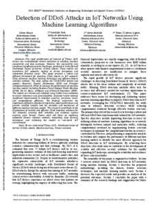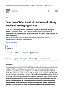 Abdulrahman Alwan, Alwan Ahmed and Shah, Asadullah and Abdulrahman Alwan, Alwan Abdullah and Laghari, Shams Ul Arfeen (2025) Detection of DDoS attacks in IoT networks using machine learning algorithms. In: 9th International Conference on Engineering Technologies and Applied Sciences (ICETAS2024), 25th August 2025, Bahrain.