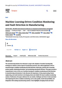 Mahmoud, Amena and Talpur, Kazim Raza and Shah, Asadullah and Saini, Shilpa and Juneja, Sapna and Elbelkasy, Manal Sobhy Ali (2025) Machine learning-driven condition monitoring and fault detection in manufacturing. In: 9th International Conference on Engineering Technologies and Applied Sciences (ICETAS2024), 25th August 2025, Bahrain.