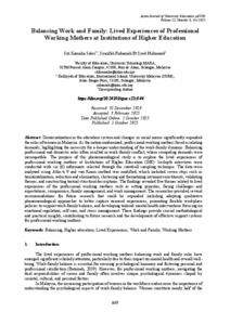 Uncontrolled Keywords: Balancing, Higher education, Lived Experiences, Work and Family, Working Mothers