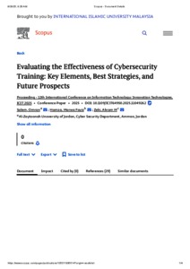 Salem, Omran and Hamza, Marwa Fayiz and Khedher, Akram M Z M (2025) Evaluating the effectiveness of cybersecurity training: key elements, best strategies, and future prospects. In: 2025 12th International Conference on Information Technology (ICIT), 27-30 May 2025, Amman, Jordan.