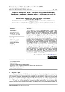Hengchao, Zhang and Mohd Thas Thaker, Mohamed Asmy and Hamid, Zarinah and Mohd Thas Thaker, Hassanudin (2025) Current status and future research directions of business intelligence and analytics education: a bibliometric analysis. International Journal of Evaluation and Research in Education (IJERE), 14 (5). pp. 3502-3514. ISSN 2252-8822 E-ISSN 2620-5440