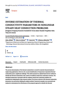 Islam, Rafiqul and Alam, M. Moksud and Hoq, S.M Afzal and Okhunov, Abdurahim (2025) Inverse estimation of thermal conductivity parameters in nonlinear steady heat conduction problems = Anggaran songsang parameter konduktiviti terma dalam masalah pengalihan haba tetap tak linear. Journal of Quality Measurement and Analysis, 21 (3). pp. 289-299. ISSN 1823-5670 E-ISSN 2600-8602