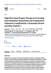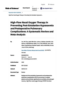Tan, Jamie Wen Yen and Izaham, Azarinah and Abd Rahman, Raha and Teo, Rufinah and Sayed Masri, Sharifah Noor Nazihah and Md. Ralib, Azrina and Chin, Kok Yong (2025) High-flow nasal oxygen therapy in preventing post-extubation hypoxaemia and postoperative pulmonary complications: a systematic review and meta-analysis. Diagnostics, 15 (19). pp. 1-15. E-ISSN 2075-4418