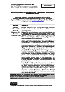 Pashtoon, Rahmatullah and Mohamad, Noorihsan and Hamid, Zarinah (2025) Determinants of female entrepreneurial success: the influence of social, financial, and institutional support. Journal of Enterprise and Development, 7 (3). pp. 547-567. ISSN 2715-3118 E-ISSN 2685-8258