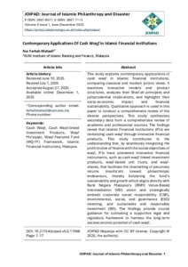 Mahadi, Nur Farhah (2025) Contemporary applications of cash Waqf in Islamic financial institutions. Journal of Islamic Philanthropy and Disaster, 5 (1). pp. 1-17. ISSN 2807-8071 E-ISSN 2807-7113
