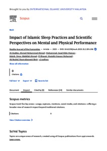 | Uncontrolled Keywords: | Islamic Sleep Practices, Cognitive Performance, Health Benefits, Scientific Research |