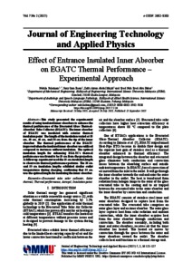 Sulaiman, Nabila and Ihsan, Sany Izan and Abdul Majid, Zafri Azran and Syed Abu Bakar, Syed Noh (2025) Effect of entrance insulated inner absorber on EGATC thermal performance – experimental approach. Journal of Engineering Technology and Applied Physics, 7 (2). pp. 121-127. E-ISSN 2682-8383