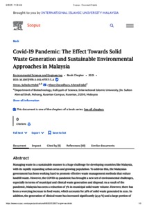 - Covid-19 pandemic: the effect towards solid waste generation and sustainable environmental approaches in Malaysia. (deposited 30 Sep 2025 11:51) [Currently Displayed]