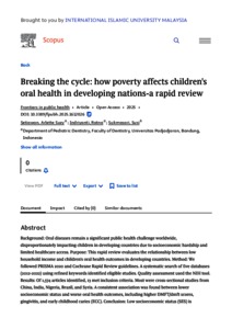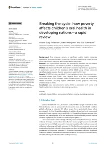 Setiawan, Arlette Suzy and Indriyanti, Ratna and Sukmasari, Susi (2025) Breaking the cycle: how poverty affects children’s oral health in developing nations - a rapid review. Frontiers in Public Health, 13 (1). pp. 1-11. E-ISSN 2296-2565