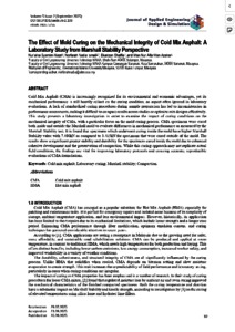 | Uncontrolled Keywords: | Cold mix asphalt, Laboratory curing, Marshall stability, Compaction |