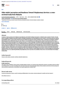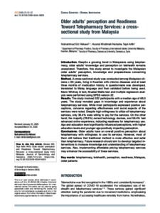Akkawi, Muhammad Eid and Tajul Arifin, Husnul Khatimah Natasha (2025) Older adults’ perception and readiness toward telepharmacy services: a cross-sectional study from Malaysia. Journal of Gerontology and Geriatrics, 73 (1). pp. 12-22. ISSN 2499-6564