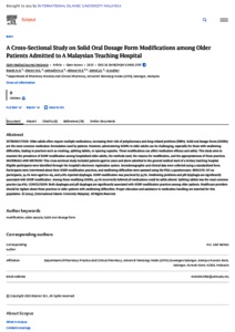 Razak, Nur Nabiha and Sha'ari, Mohamad Suhaidi and Jamludin, Nurul Ashikin and Akkawi, Muhammad Eid and Jamal, Janattul AIn and Abd Wahab, Mohd Shahezwan (2025) A cross-sectional study on solid oral dosage form modifications among older patients admitted to a Malaysian teaching hospital. IIUM Medical Journal Malaysia, 24 (2). pp. 104-113. ISSN 1823-4631 E-ISSN 2735-2285