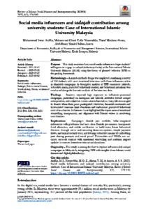 Ariffin, Muhammad Irwan and Nasaruddin, Muhammad Ghazi Zufar and Ahsan, Yusuf Maulana and Ameer, Abdulbarry Sharief Sultan (2025) Social media influencers and sadaqah contribution among university students: case of International Islamic University Malaysia. Review of Islamic Social Finance and Entrepreneurship, 4 (2). pp. 124-140. E-ISSN 2963-847X