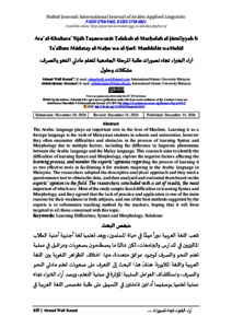 The Arabic language plays an important role in the lives of Muslims. Learning it as a foreign language is the wish of Malaysian students in schools and universities, however they often encounter difficulties and obstacles in the process of learning Syntax and Morphology due to multiple factors, including the difference in linguistic phenomena between the Arabic language and the Malay language. This research aims to identify the difficulties of learning Syntax and Morphology, explore the negative factors affecting the learning process, and monitor the experts’ opinions regarding the process of learning it as two effective tools in facilitating it for students majoring in the Arabic language in Malaysia. The researchers adopted the descriptive analytical approach and they used a questionnaire tool to obtain the data, and then analyzed and evaluated them based on the experts’ opinion in the field. The researchers concluded with a set of results, the most important of which are: Most of the study sample faced difficulties in learning Syntax and Morphology, and they agreed that the lack of practice and application is one of the main reasons for their weakness in both subjects, and one of the best methods suggested by the experts is to reformulate teaching method by the teachers, hoping that it will form targeted to all those concerned with this topic. ***** تلعب اللغة العربية دوراً مهمًّا في حياة المسلمين، ويعد تعلمها لغة أجنبية أمنية الطلاب الماليزيين في المدارس والجامعات، لكن غالبًا ما يصطدمون بصعوبات وعراقيل في عملية تعلم النحو والصرف لوجود عوائق متعددة، منها: اختلاف الظواهر اللغوية بين اللغة العربية واللغة الملايوية. هدَفَ هذا البحث إلى التعرف على صعوبات تعلم مادتي النحو والصرف، واستكشاف العوامل السلبية المؤثرة في عملية التعلم، ورصد آراء الخبراء تجاه عملية تعلمها بوصفهما أداتين فاعلتين في التسهيل على طلبة تخصص اللغة العربية في ماليزيا. اعتمد الباحثان المنهج الوصفي التحليلي وقاما باستخدام الاستبانة للحصول على استجابات طلبة تخصص اللغة العربية، ومن ثم تحليلها وتقييمها بناء على آراء الخبراء في المجال. وقد انتهى الباحثان إلى مجموعة من النتائج، من أهمها: أن أغلب عينة الدراسة قد واجهوا صعوبات في تعلم علمي النحو والصرف، كما اتفقوا على أن قلّة الممارسة والتطبيق هي من الأسباب الرئيسة لضعفهم في كلتا المادتين، ووجه الخبراء إلى تغيير طريقة التدريس من قبل المعلمين من خلال تعديل المقررات التعليمية المدرسية.