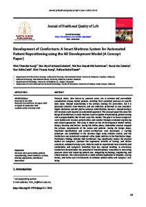 Aung, Khin Thandar and Suhaimi, Nur Alya Farhana and Nik Sukriman, Nik Nur Aisyah and Zakaria, Nurul Ain and Zaidi, Nur Adila and Aung, Khin Thuzar and Abdul Razak, Rafiza (2025) Development of Comforturn: a smart mattress system for automated patient repositioning using the 4D development model (a concept paper). Journal of Health and Quality of Life, 8 (1). pp. 20-26. E-ISSN 3030-5101