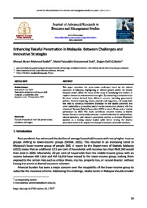 Mahmad Robbi, Ahmad Akram and Muhammad Zuki, Mohd Faizuddin and Gultekin, Dogan Delil (2025) Enhancing takaful penetration in Malaysia: between challenges and innovative strategies. Journal of Advanced Research in Business and Management Studies, 38 (1). pp. 70-77. E-ISSN 2462-1935