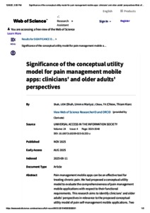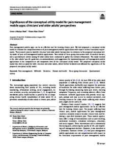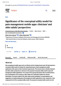 Shah, Umm E Mariya and Chiew, Thiam Kian (2025) Significance of the conceptual utility model for pain management mobile apps: clinicians’ and older adults’ perspectives. Universal Access in the Information Society, 24 (4). pp. 3529-3548. ISSN 1615-5289 E-ISSN 1615-5297