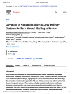 Khan, Abida and Mostafa, Howayada Mahany and Almohammed, Khalid Hassan and Singla, Neelam and Bhatti, Zohra and Siddique, Muhammad Irfan (2025) Advances in nanotechnology in drug delivery systems for burn wound healing: a review. Biomedical and Pharmacology Journal, 18 (1). pp. 373-386. ISSN 0974-6242 E-ISSN 2456–2610