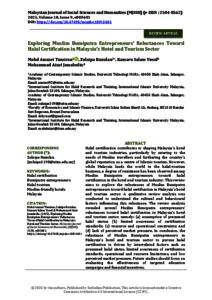 Tumiran, Mohd Amzari and Ruzulan, Zulaipa and Yusof, Kamaru Salam and Jamaludin, Mohammad Aizat (2025) Exploring Muslim Bumiputra entrepreneurs’ reluctances toward halal certification in Malaysia’s hotel and tourism sector. Malaysian Journal of Social Sciences and Humanities, 10 (9). pp. 1-12. E-ISSN 2504-8562