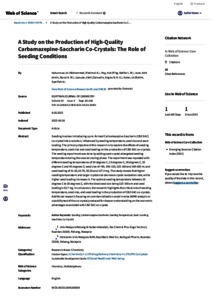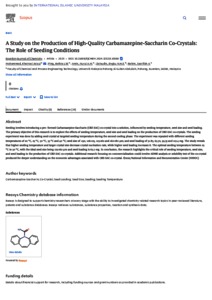Uncontrolled Keywords: | Seeding, Carbamazepine-Saccharin, Seeding Temperature, Seed Loading, Seed Size, Co-Crystal |