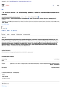 Abu Hanifah, Nabihah and Kuttulebbai Naina Mohamed Salam, Sirajudeen and Ahmad Affandi, Khairunisa and Abdullah, Nor Zamzila and Buyong, Zunariah and Abdul Rahim, Roslina and Ahmad, Hajar Fauzan (2025) The intricate nexus: the relationship between oxidative stress and inflammation in obesity. Malaysian Journal of Medicine and Health Sciences, 21 (5). pp. 365-374. ISSN 1675-8544 E-ISSN 2636-9346