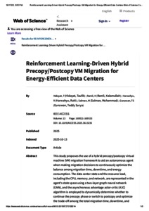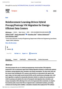 Hidayat, Taufik and Ramli, Kalamullah and Harwahyu, Ruki and Salman, Muhammad and Gunawan, Teddy Surya (2025) Reinforcement learning-driven hybrid precopy/postcopy VM migration for energy-efficient data centers. IEEE Access, 13. pp. 169521-169533. E-ISSN 2169-3536