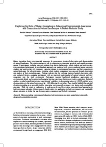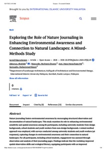 Zakariya, Khalilah and Nizarudin, Norhanis Diyana and Md Jani, Haza Hanurhaza and Samsudin, Muhammad Nizam (2025) Exploring the role of nature journaling in enhancing environmental awareness and connection to natural landscapes: a mixed-methods study. Jurnal Kejuruteraan, 37 (6). pp. 2931-2942. ISSN 0128-0198 E-ISSN 2289-7526