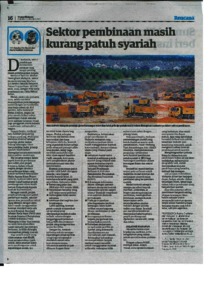 Che Haron, Roziha and Sulaiman, Nurul Nabilah (2025) Sektor pembinaan masih kurang patuh syariah. Utusan Malaysia, Rencana (16hb Oktober 2025). p. 16. ISSN 2716-6694