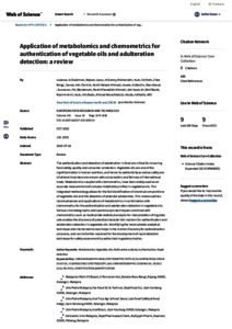 | Uncontrolled Keywords: | Metabolomics, Vegetable oils, Multivariate analysis, Authentication, Rapid detection |