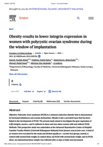 Abdul Hamid, Fazilah and Mokhtar, Mohd Helmy and Abdul Karim, Abdul Kadir and Ahmad, Mohd Faizal and Abd Aziz, Nor Haslinda and Abdul Wahab, Azantee Yazmie and Abu, Muhammad Azrai (2025) Obesity results in lower integrin expression in women with polycystic ovarian syndrome during the window of implantation. Frontiers in Endocrinology, 16 (-). pp. 1-7. ISSN 1664-2392