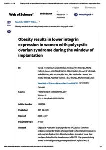 Uncontrolled Keywords: gene expression, integrin, implantation window, obese, polycystic ovary syndrome, obesity