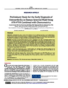 Preliminary study for the early diagnosis of osteoarthritis in human synovial fluid using ATR-FTIR combined with chemometrics