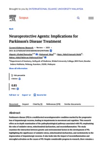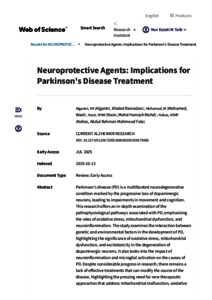 Algantri, Khaled Ramadan and Mohamed, Wael Mohamed Yousef and Mohd Nasir, Mohd Hamzah and Fata Nahas, Abdul Rahman (2025) Neuroprotective agents: implications for Parkinson's disease treatment. Current Alzheimer Research, 22 (9). pp. 634-660. ISSN 1567-2050 E-ISSN 1875-5828
