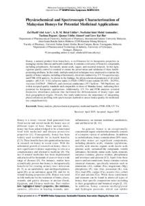 Abd Aziz, Zul Hadif and Helal Uddin, A.B.M. and Mohd Aminudin, Norfatini and Begum, Taslima and Ahmed, Qamar Uddin and Liew, Kai Bin (2025) Physicochemical and spectroscopic characterissation of Malaysian honeys for potential medicinal applications. Malaysian Journal of Chemistry, 27 (5). pp. 58-67. ISSN 1511-2292 E-ISSN 2550-1658
