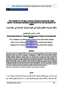 Uncontrolled Keywords: الشكلية القانونية، التصرفات العقارية، المصارف الإسلامية، القانون العماني